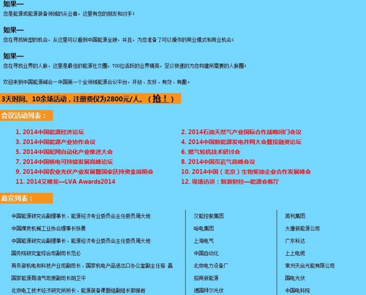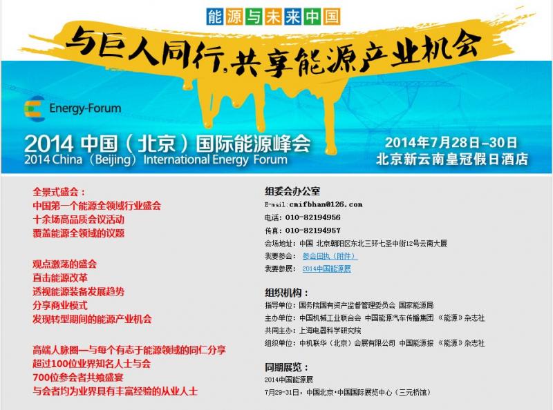 2014中國(guó)(北京)國(guó)際能源峰會(huì)將于7月28日-30日在北京新云南皇冠假日酒店召開
