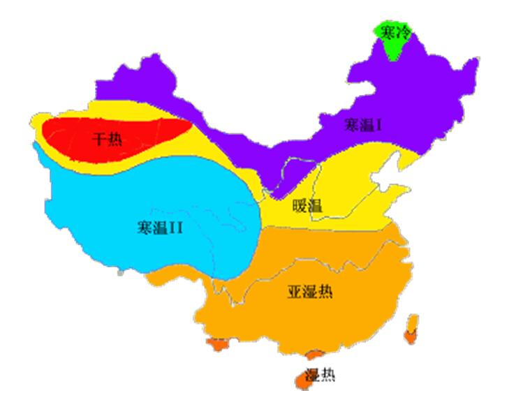 圖1 我國七類氣候環(huán)境分區(qū)圖