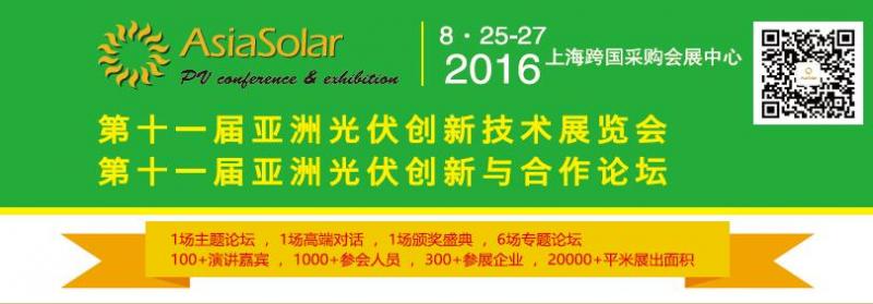 2016年8月25-27日將在上海跨國(guó)采購(gòu)會(huì)展中心隆重舉行"AsiaSolar 2016第十一屆亞洲太陽(yáng)能光伏創(chuàng)新展覽會(huì)暨論壇",將有近300家創(chuàng)新企業(yè)參展或參加論壇,主要圍繞光伏電站建設(shè)產(chǎn)業(yè)鏈、創(chuàng)新的組件系統(tǒng)、逆變器、儲(chǔ)能、支架及追蹤技術(shù)、水上漂、電站設(shè)計(jì)、建設(shè)、智能運(yùn)維、檢測(cè)以及電站投融資創(chuàng)新模式、第三方信用認(rèn)證評(píng)價(jià)等議題展開(kāi)充分交流合作。