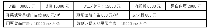 光地展區(qū): 國際展區(qū)350美元/m2 國內1300元/ m2展期