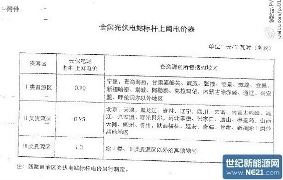 據(jù)消息人士透露,今日發(fā)改委特急文件《國家發(fā)改委關于發(fā)揮價格杠桿作用促進光伏產(chǎn)業(yè)健康發(fā)展的通知》發(fā)改價格[2013]1638號,通知明確新的地面電站三類電價補貼分別根據(jù)光資源優(yōu)劣分為0.9元/千瓦時、0.95元/千瓦時和1元/千瓦時。分布式補貼0.42元/度! 根據(jù)通知要求