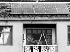 11月26日,合肥市肥東縣長(zhǎng)臨河鎮(zhèn)羅洪村村民王建春在陽(yáng)臺(tái)上曬香腸,屋頂是他家的家庭分布式光伏發(fā)電站太陽(yáng)能板。自今年6月以來(lái),合肥在全市范圍內(nèi)選擇105戶貧困家庭,開(kāi)展家庭分布式光伏發(fā)電站建設(shè)試點(diǎn)。據(jù)該市農(nóng)委相關(guān)人士介紹,合肥市希望通過(guò)“光伏下鄉(xiāng)扶貧工程”充分利用農(nóng)村貧困戶屋頂資源,建設(shè)家庭分布式光伏發(fā)電站,探索幫助農(nóng)村貧困戶脫貧解困的新路子。