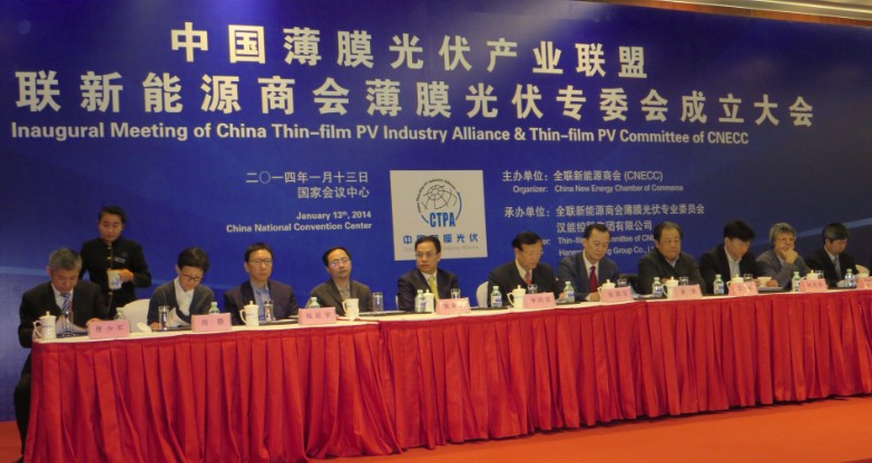 太陽(yáng)能發(fā)電網(wǎng)2014年1月13日北京報(bào)道 中國(guó)薄膜光伏產(chǎn)業(yè)聯(lián)盟今天在北京成立,全聯(lián)新能源商會(huì)會(huì)長(zhǎng)李河君當(dāng)選聯(lián)盟主席,國(guó)家能源委員會(huì)能源專家咨詢委員會(huì)主任張國(guó)寶受聘擔(dān)任名譽(yù)主席,全國(guó)工商聯(lián)副主席黃榮出席成立大會(huì)并致詞。