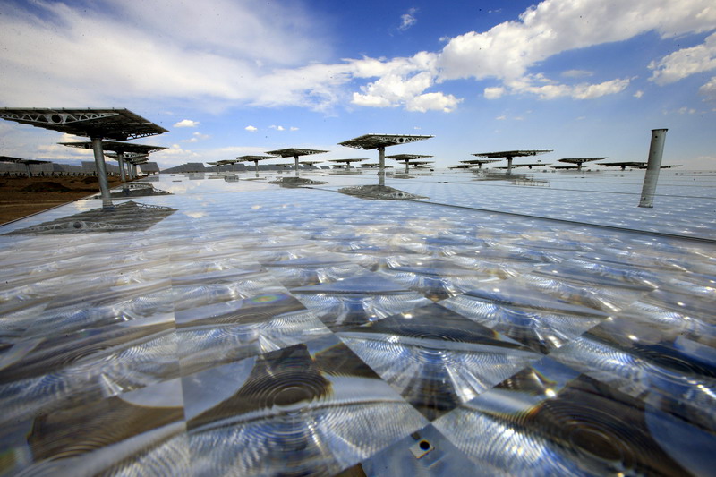 圖為新疆哈密弗光太陽能有限公司待裝設(shè)的聚光太陽能光伏發(fā)電設(shè)備。新華社記者 李明放攝