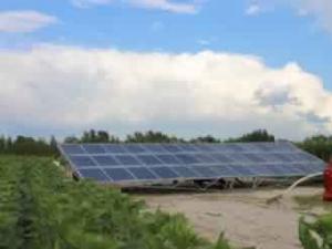 6月29日,第二臺(tái)樣機(jī)運(yùn)達(dá)雙崗鎮(zhèn),該機(jī)經(jīng)過(guò)了進(jìn)一步技術(shù)改進(jìn),改進(jìn)后的樣機(jī)由42塊光伏板組成,功率為10.5千瓦,配套7.5千瓦水泵,單機(jī)一次可對(duì)實(shí)現(xiàn)200畝農(nóng)田的滴灌試驗(yàn)獲得成功,比第一臺(tái)增加灌溉面積50畝,實(shí)現(xiàn)了人工追蹤太陽(yáng)光照角度的調(diào)整,使最大功率發(fā)電時(shí)間延長(zhǎng)了3個(gè)小時(shí)左右,達(dá)到9小時(shí)以上,生產(chǎn)工藝有較大改進(jìn)。