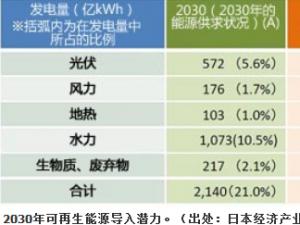 日本經濟產業(yè)省9月10日舉行了綜合資源能源調查會新能源小委員會第3次會議。會議估算可再生能源發(fā)電量到2030年將占整體發(fā)電量的20.5%。該估算值中,光伏發(fā)電的設備容量為7431萬kW(74.31GW),占日本全部發(fā)電量的8.2%。此結果的估算除了基于可再生能源電力固定價格收購制度于2014年5月