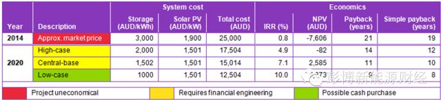表1:在四種情況下,新南威爾士州光伏+ 儲能的經濟分析