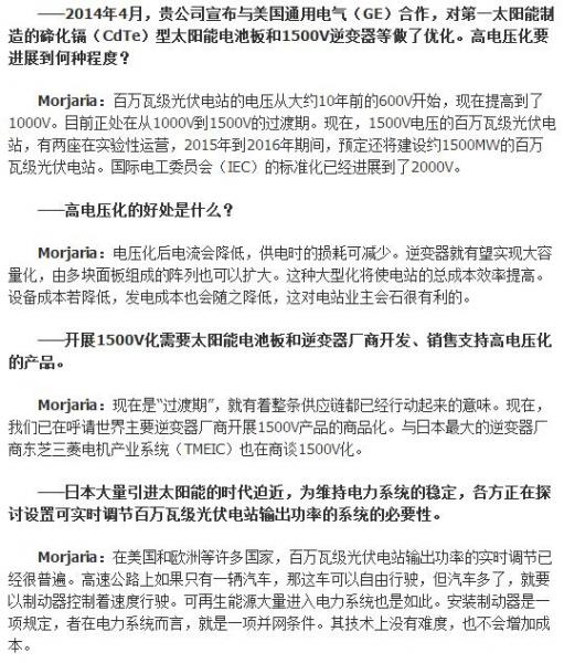 未來2年將建設(shè)1500MW的1500V規(guī)格光伏電站