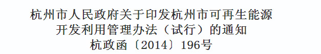 杭州市可再生能源開(kāi)發(fā)利用管理辦法(試行)