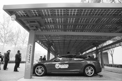 站在充電站的房檐下抬頭望去,一片片光伏發(fā)電板可以透射出天空中的云彩。只有玻璃厚度大小的發(fā)電板有多大功率?充電站建設(shè)和運營方北京富電科技有限公司副總經(jīng)理唐寧介紹,他們特意選用了透光太陽能光板,這使得光能轉(zhuǎn)換率達到22%,超過了目前市面上的多數(shù)產(chǎn)品,發(fā)電功率達到25千瓦,“一天的發(fā)電量能讓7輛左右的純電動車充滿電”。此外,充電站和電網(wǎng)并網(wǎng)運行,如果太陽能光伏電運行不足,系統(tǒng)就會自動切換到電網(wǎng)供電,并不會影響車輛充電。