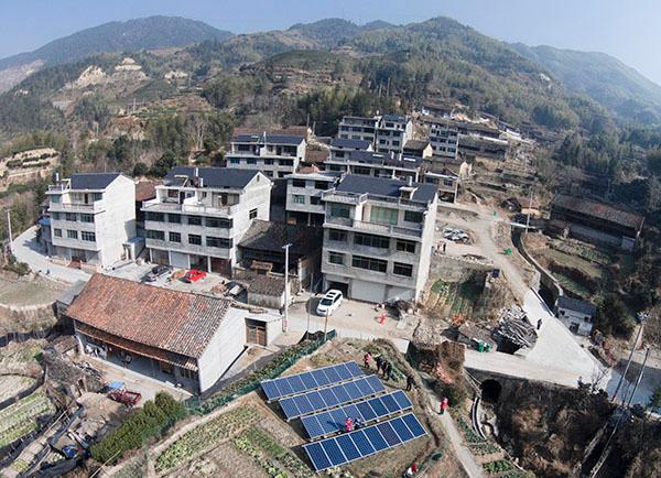這是1月19日航拍的位于浙南山區(qū)景寧畬族自治縣澄照鄉(xiāng)后山村的家庭太陽能發(fā)電站。