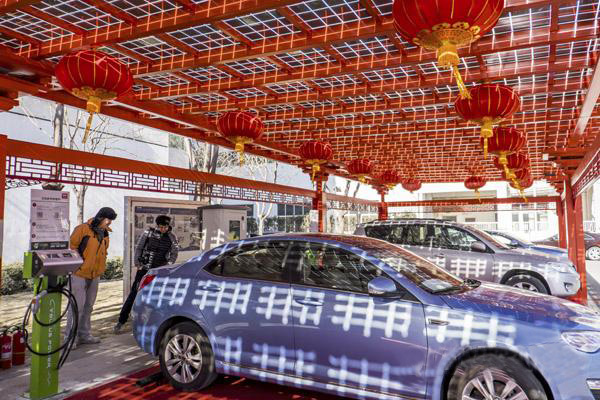 2015年1月21日,由北京富電科技有限公司建設(shè)運(yùn)營的華貿(mào)電能汽車充電站在華貿(mào)中心正式啟用。 北京華貿(mào)中心東側(cè)停車場(chǎng),遠(yuǎn)看有點(diǎn)像縮小版的世博會(huì)中國館,紅色窗欞映照下,6臺(tái)一米多高的綠色充電樁一字排開,抬頭往上看,人們會(huì)發(fā)現(xiàn)這個(gè)屋頂和尋常的磚瓦不相同,整