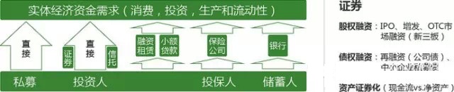 實體企業(yè)融資需求主要產(chǎn)生于消費(fèi)、投資、生產(chǎn)和流動性等需求。根據(jù)需求的不同,通過不同渠道從投資人出融資。其中證券屬于直接融資渠道之一。主要區(qū)別于銀行、保險、小額貸款和融資租賃等服務(wù)機(jī)構(gòu)。直接融資的成本較低,同樣的資產(chǎn)估值模式不同決定融資總額不同。