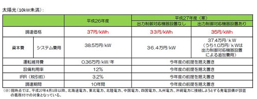 2015年度的光伏發(fā)電(10kW以下)委員長草案(出處:經(jīng)濟產(chǎn)業(yè)。