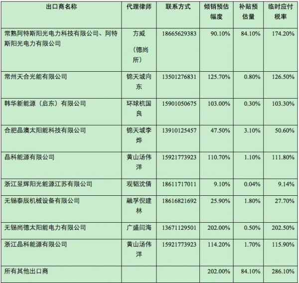 2015年3月6日,加拿大邊境服務(wù)署對(duì)進(jìn)口自中國(guó)的光伏組件和晶片反傾銷反補(bǔ)貼調(diào)查作出初裁。我國(guó)企業(yè)稅率如下: