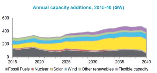 最新的NEO2015的特點(diǎn)是,介紹了各國(guó)和各技術(shù)領(lǐng)域的電力需求、發(fā)電成本及結(jié)構(gòu)變化,并就到2040年的發(fā)展,揭示了以下五大趨勢(shì)。