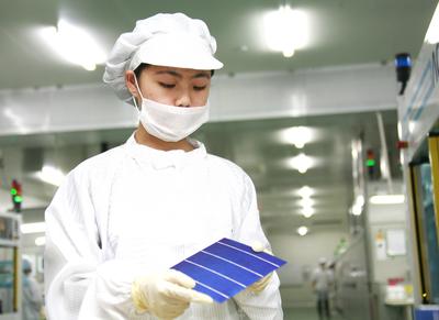 尚德員工正在對HyPro電池進行質檢