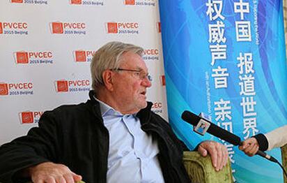 世界可再生能源理事會主席沃爾夫?qū)翣柎脑?2日召開的2015中國光伏領袖峰會上表示,人們通常認為歐洲的光伏機組質(zhì)量會更好,然而經(jīng)過對比,中國光伏機組的質(zhì)量被證明是優(yōu)于歐洲光伏機組質(zhì)量的。圖為 世界可再生能源理事會主席沃爾夫?qū)翣柎慕邮懿稍L 孫廣見 攝