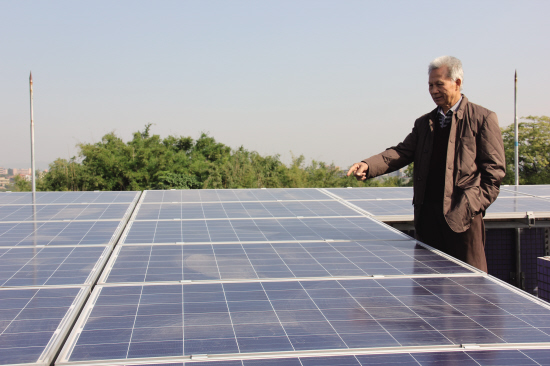 易先生在介紹他樓頂?shù)墓夥l(fā)電設(shè)施