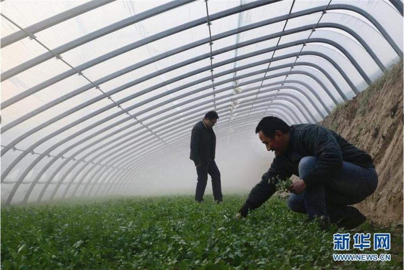 12月7日,溫室大棚內(nèi),種植戶正在查看試種蔬菜的生長情況。新華社發(fā)(殷子建 攝)