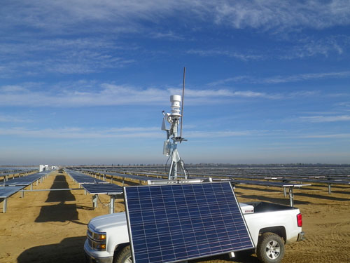 百萬光伏電站是在位于帕姆代爾東北約8km、莫哈韋沙漠西側(cè)的180英畝(約73公頃)土地上,鋪設(shè)了約9萬8000張光伏板(圖1)。在美國空軍所有的土地上建設(shè)的光伏電站中規(guī)模為最大。