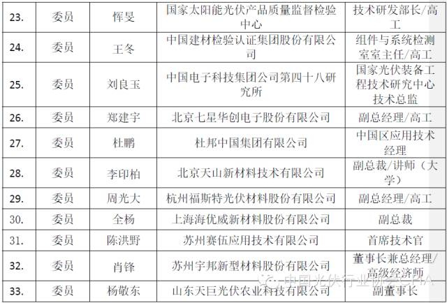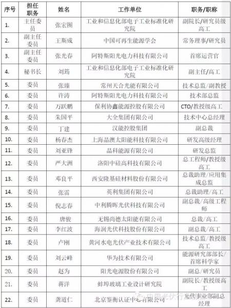 光伏協(xié)會(huì)標(biāo)委會(huì)第一屆委員名單