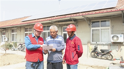 工作人員正在對光伏發(fā)電并網(wǎng)項(xiàng)目運(yùn)行情況進(jìn)行回訪。