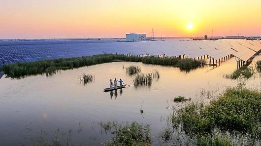 華電集團(tuán)在江蘇泰州的一座500兆瓦的太陽(yáng)能電站。