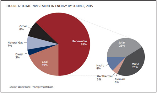 原標(biāo)題:世行2015年基礎(chǔ)設(shè)施投資統(tǒng)計:光伏發(fā)電比過去5年的平均值增加72%