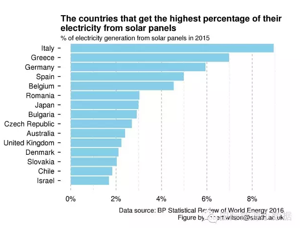 截至2015年底,如果看光伏累計(jì)裝機(jī)容量的話,中國(guó)毫無(wú)疑問(wèn)是冠軍(43.5GW),但如果按照如果各國(guó)光伏發(fā)電占總發(fā)電量的比例來(lái)看......