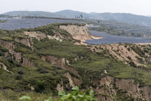 太子里村是山西省孝義市西辛莊鎮(zhèn)的采空區(qū)之一。這里的太陽能光伏發(fā)電項目是從村民手中流轉(zhuǎn)出廢棄地和荒地,在保證正常發(fā)電前提下對電站內(nèi)的土地土壤、植被、水系進行恢復性保護。