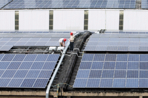 近日,在江蘇常州常武南路今創(chuàng)集團(tuán)新生產(chǎn)用房的基建現(xiàn)場,一大片用于支撐太陽能板的支架也同步在屋頂上裝訂好,工人們扛著一塊塊光伏板正熱火朝天進(jìn)行著安裝工作。據(jù)了解,今創(chuàng)集團(tuán)在建設(shè)新廠房的同時(shí),同步在廠房屋頂上開展了分布式光伏電站的建設(shè)。