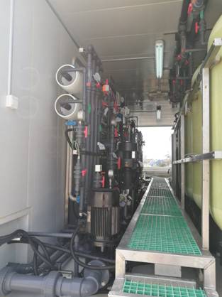 2016年11月20日,成套設(shè)備在豐海公司調(diào)試基地完成試運行,起運發(fā)往海南,12月8日運抵趙述島。12月20日,豐海公司技術(shù)團(tuán)隊陸續(xù)上島,開始安裝調(diào)試。12月31日,設(shè)備成功出水,電導(dǎo)率4.38,水質(zhì)優(yōu)良,可供島上居民日常使用。三級反滲透產(chǎn)水灌裝成桶裝成品水,進(jìn)行儲存和銷售。