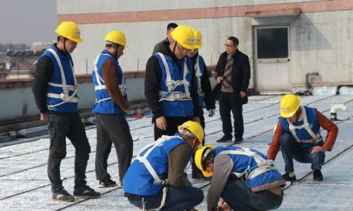 “先在屋頂進行防水貼膜作業(yè),然后安裝光伏發(fā)電面板,面板一律向北傾斜,可聚集陽光,從而實現(xiàn)發(fā)電,就好比在屋頂建了個‘發(fā)電站’!痹擁椖康慕(jīng)理劉慶海介紹,該項目工程是利用閑置的公共屋頂資源,安裝光伏發(fā)電設(shè)施,發(fā)電收益用于發(fā)展經(jīng)濟薄弱村,整個項目的投資、承建均由政府兜底把關(guān)!皬拇,那些經(jīng)濟薄弱村就有了能源源不斷‘生錢’的‘金屋頂’”。