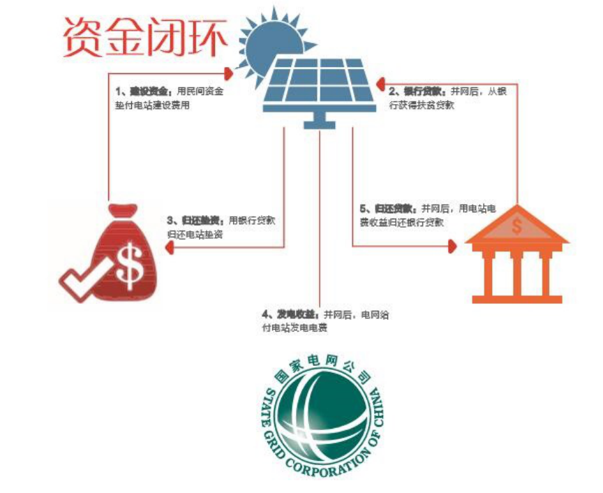 另外,光伏扶貧養(yǎng)老工程通過民間金融保障電站建設資金,銀行貸款保障歸還民間墊資,發(fā)電收益保障歸還銀行貸款,電站發(fā)電保障產生持續(xù)收益的資金閉環(huán),從而完成整個建設過程。