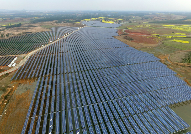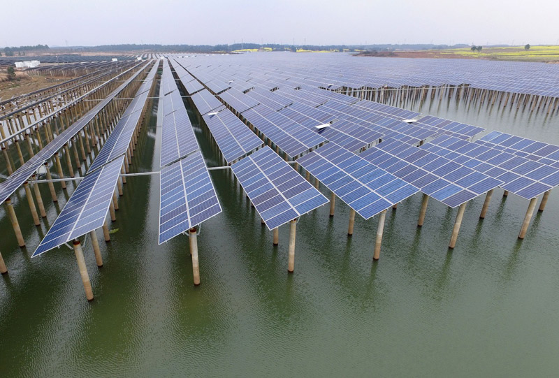 這是3月16日拍攝的江西奉新“漁光互補”光伏發(fā)電一期項目。新華社記者 萬象 攝