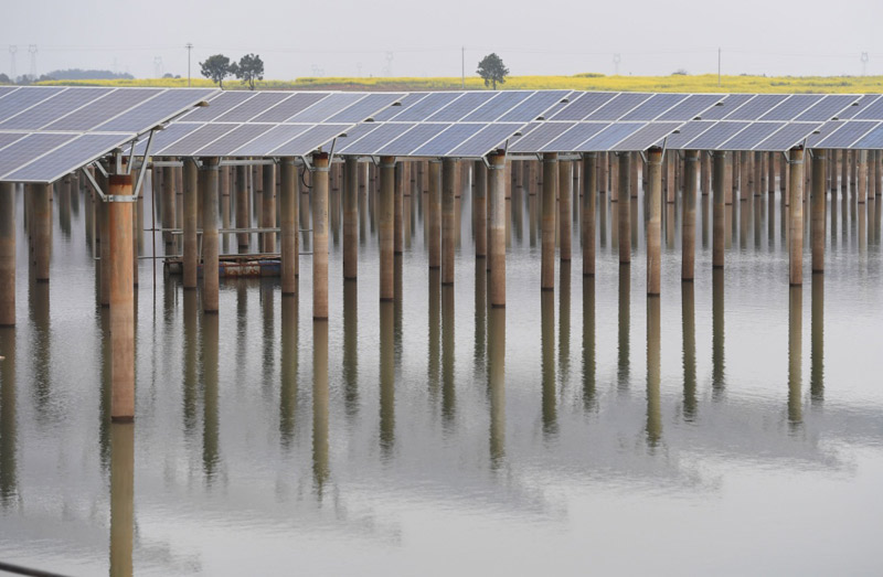 近日,坐落于江西省宜春市奉新縣躍進水庫上的泰明“漁光互補”光伏發(fā)電項目一期35兆瓦光伏電站建成投運。泰明漁光互補光伏發(fā)電項目是可再生清潔能源項目,總投資12億元,總裝機容量110兆瓦,上層用于光伏發(fā)電,下層用于水產(chǎn)養(yǎng)殖,提高了單位面積土地和水域的經(jīng)濟價值,有效利用水庫和灘涂草地約2000畝。