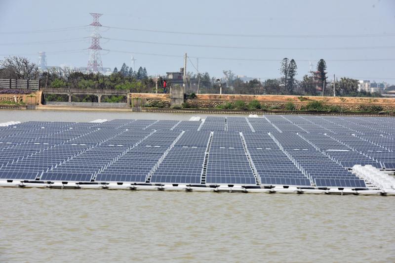 設(shè)置于桃園市埤塘的漂浮型太陽能發(fā)電系統(tǒng)。(來源:桃園市政府)