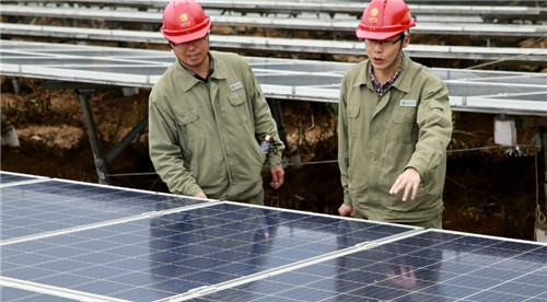 秭歸縣茅坪鎮(zhèn)溪口坪村光伏電站并網(wǎng)發(fā)電,工作人員做調(diào)試檢查。王罡 攝