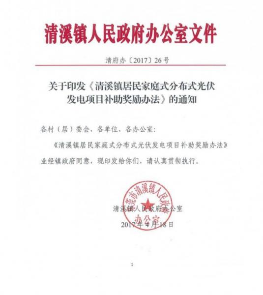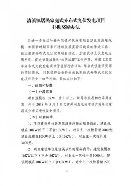 廣東東莞清溪鎮(zhèn)居民家庭式分布式光伏發(fā)電項目補助獎勵辦法 光伏系統(tǒng)工程