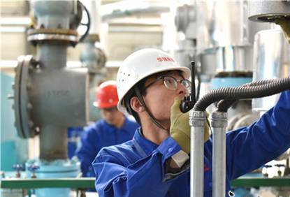 5月11日,張家口市張北縣華強(qiáng)兆陽(yáng)能源有限公司太陽(yáng)能熱發(fā)電站工人正在檢查給水泵出口電動(dòng)閥門(mén)。
