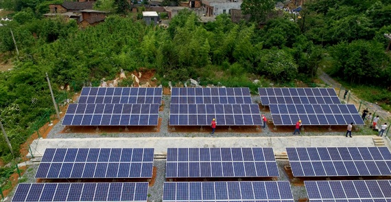 5月29日,電力部門工作人員在桂陽縣歐陽海鎮(zhèn)增家源村光伏發(fā)電站察看發(fā)電情況。該發(fā)電站裝機(jī)容量為63.6千瓦,可實(shí)現(xiàn)日均發(fā)電180度,每年可為村里創(chuàng)造6萬元的經(jīng)濟(jì)效益,幫助村民實(shí)現(xiàn)脫貧致富。去年,該縣通過政府擔(dān)保貸款方式,在36個(gè)貧困村建了39個(gè)光伏發(fā)電站,目前所有發(fā)電站正陸續(xù)投入使用。(歐陽常海 張躍平 攝)