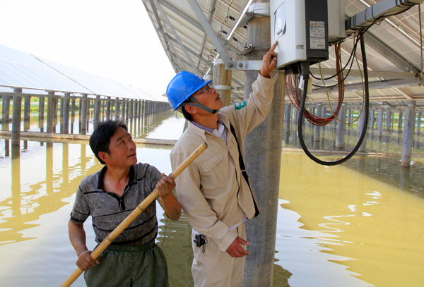 “多虧了供電部門(mén)給我出謀劃策,建了這‘漁光互補(bǔ)’的光伏電站,讓我養(yǎng)蟹發(fā)電兩不誤,村上人都說(shuō)我這是‘雙贏’的買(mǎi)賣(mài)啊!”6月10日上午,江蘇常州溧陽(yáng)市供電公司埭頭供電所三名員工來(lái)到該鎮(zhèn)余家壩村“漁光互補(bǔ)”水上光伏電站開(kāi)展入夏光伏發(fā)電設(shè)備檢查時(shí),電站負(fù)責(zé)人史國(guó)虎高興的說(shuō)道。