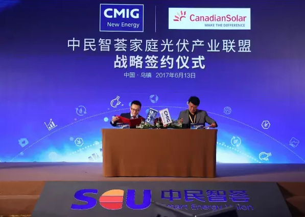 2017年6月13日,阿特斯陽光電力集團(tuán)總裁瞿曉鏵博士受邀出席中民新光有限公司(簡稱“中民新光”)在浙江烏鎮(zhèn)舉辦的,國內(nèi)首個(gè)新能源全產(chǎn)業(yè)鏈交互服務(wù)平臺—“中民智薈”戰(zhàn)略發(fā)布會暨平臺上線儀式并發(fā)表講話。中民新光是中國民生投資集團(tuán)新能源領(lǐng)域?qū)I(yè)投資平臺中民新能投資集團(tuán)旗下,專注家庭清潔能源業(yè)務(wù)的全資子公司。