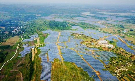 近年來,河南省平頂山市寶豐縣充分利用荒山資源,通過招商引資、荒山租賃等形式,在當(dāng)?shù)赜^音堂林站回龍廟村建設(shè)100兆瓦光伏發(fā)電項(xiàng)目,打造生態(tài)清潔能源。據(jù)了解,該項(xiàng)目總投資8.3億元,利用荒山面積3000余畝。目前,該項(xiàng)目已經(jīng)建成并網(wǎng)送電,預(yù)計(jì)年發(fā)電10900萬千瓦時(shí)。新華社記者李博攝