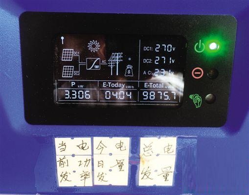 配套安裝的逆變器顯示當前功率、今日發(fā)電量和總發(fā)電量,讓居民一目了然。記者 李小萌/攝影