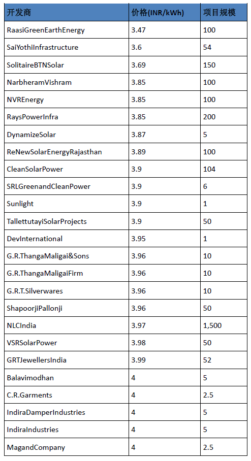 印度泰米爾納德邦最新一次1.5GW 太陽(yáng)能項(xiàng)目招標(biāo)獲得了迄今為止該邦最低價(jià)格,Raasi Green Earth以INR3.47/kWh (US$0.054)的價(jià)格贏得了100MW項(xiàng)目。