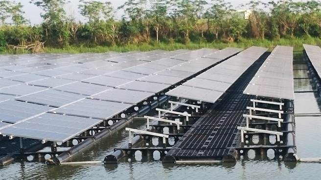 除在建筑物上設置太陽能光電系統(tǒng),經(jīng)發(fā)局也推動水域型浮動式太陽能,希望增加設置空間。(臺南市經(jīng)發(fā)局提供)