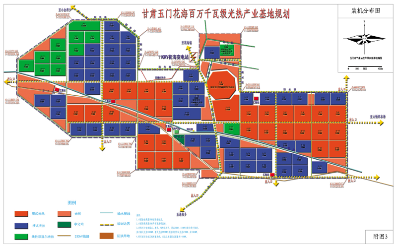 據(jù)規(guī)劃布局圖(見附件),目前已落戶該園區(qū)的包括國華電力玉門100MW熔鹽塔式電站、博成通達50MW菲涅爾光熱電站、金釩50MW槽式電站項目。其中國華電力項目為首批國家光熱示范項目之一,玉門獲批的另外三個示范項目均不在該園區(qū)規(guī)劃內。
