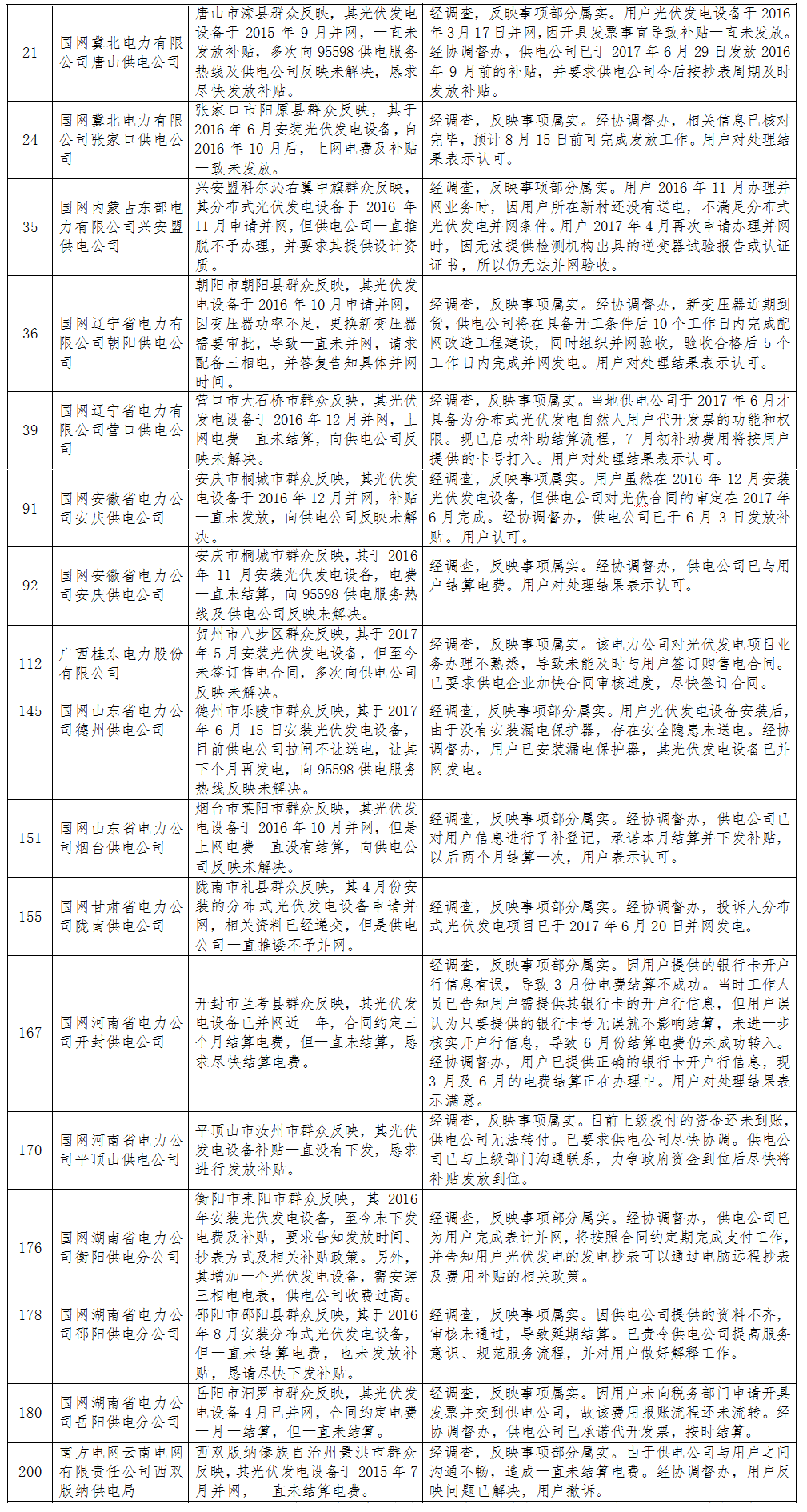 針對群眾反映的投訴舉報事項,國家能源局派出監(jiān)管機構嚴格依據國家有關法律法規(guī)及文件規(guī)定進行了處理:一是通過解釋說明,澄清事實,使當事人消除了誤解;二是通過協(xié)調督促,加快了電能質量、安全隱患等問題的解決,保障了群眾正常生產生活;三是通過監(jiān)管約談、責令整改等方式,糾正了供電企業(yè)違法違規(guī)行為,維護了當事人合法權益。